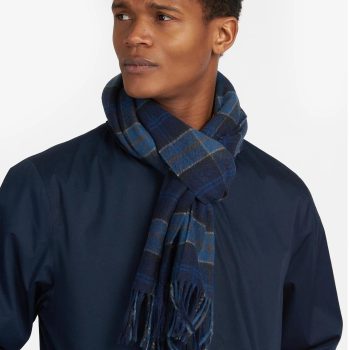 Barbour Men’s Blue Checked Wool Scarf