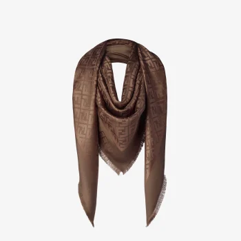 Fendi FF Shawl – Brown Silk and Wool Jacquard Scarf