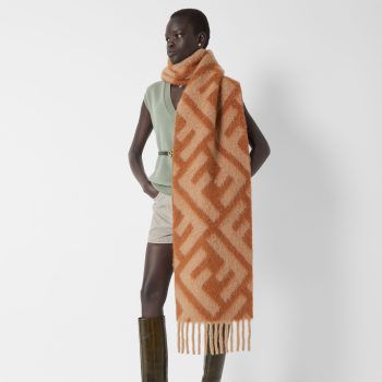 Fendi FF Brown Scarf – Oversized Alpaca & Wool Jacquard Scarf