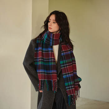 Women’s Large Soft Plaid Cashmere Winter Scarf with Tassel Wrap