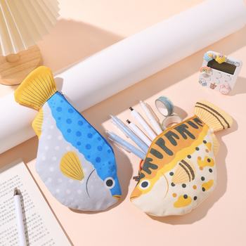 Large Capacity Pufferfish Pencil Case – Fun Cartoon Animal Storage Bag