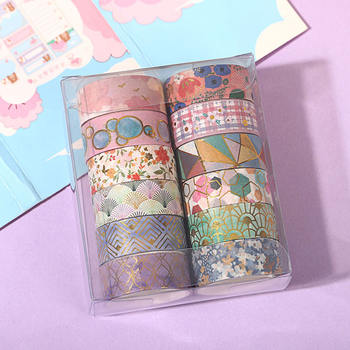12 Rolls Decorative Geometry Washi Tape Set with Gold Foil