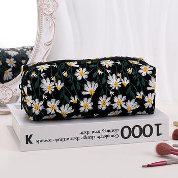 Embroidery Daisy Pencil Case Large Capacity School Supplies Pouch