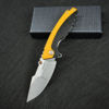 • Handle Material: G10 – A combination of yellow and black G10 provides a rugged, lightweight handle that offers an ergonomic grip for comfort during extended use.