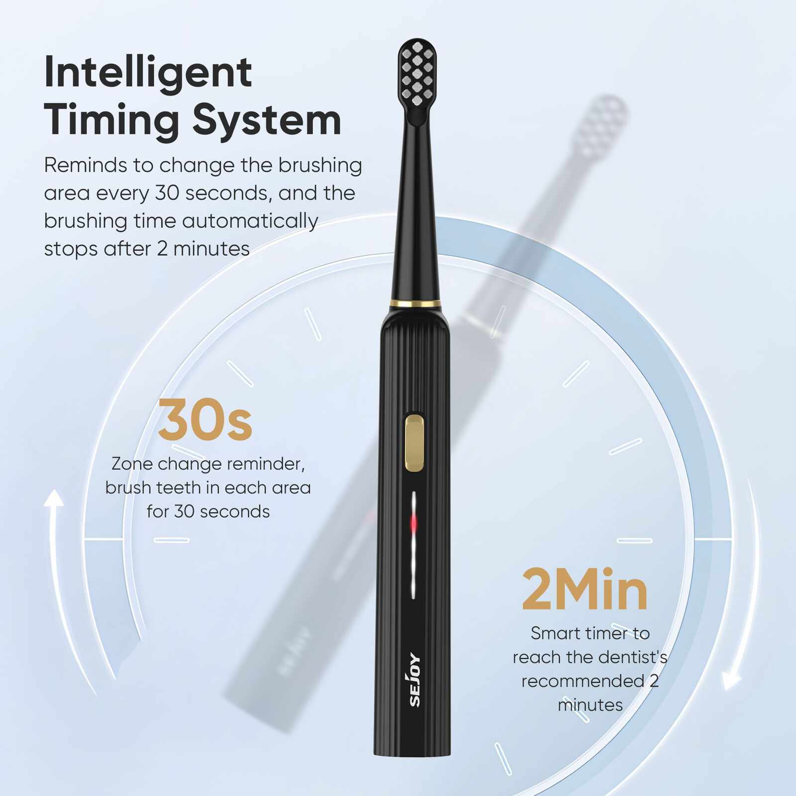 Equipped with a 2-minute built-in smart timer, this toothbrush guides you through the dentist-recommended brushing duration, helping you clean each area of your mouth evenly. The 5 customizable cleaning modes—Soft, Clean, White, Polish, and Massage—allow you to tailor your brushing experience to your exact needs, whether you’re brightening your smile, soothing sensitive gums, or polishing for extra shine.