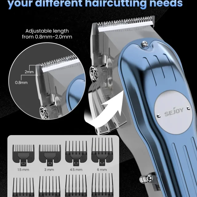 This hair clippers and trimmers set makes at-home haircuts simple, fast, and stylish. Perfect for routine trims, full haircuts, or detailed beard and neckline work, it helps you achieve a polished look anytime you want. Designed for ease of use and professional performance, it turns grooming into an effortless part of your day. Take control of your style—experience the freedom of cordless, precise grooming now.