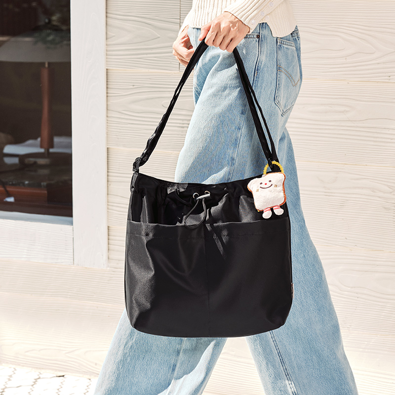 This tote bag combines practicality with a sleek, minimalist look. Its bucket shape offers roomy storage, while the adjustable strap allows you to wear it comfortably as a shoulder bag or crossbody. The drawstring closure adds a trendy touch while keeping your belongings safe. Made with quality materials, the bag is lightweight yet durable enough for daily use.