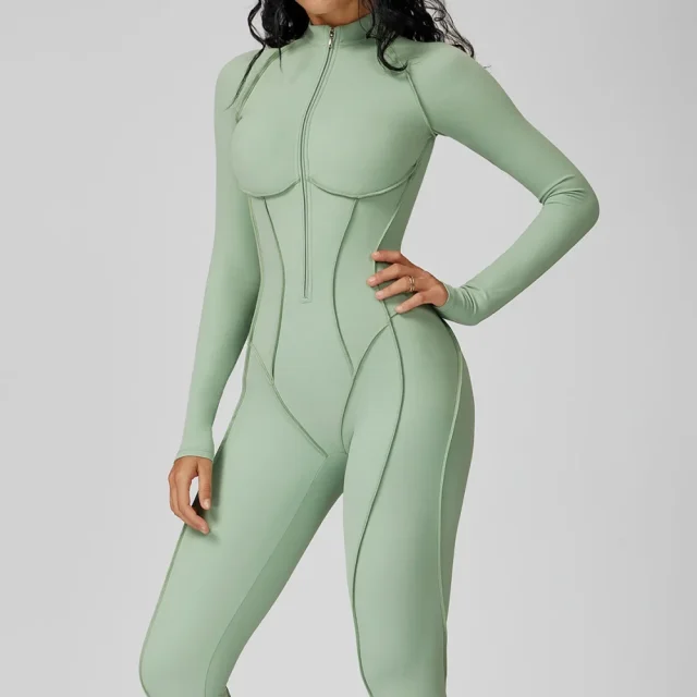 Crafted from a premium blend of 78% nylon and 22% spandex, it feels like a second skin – smooth, stretchy, and breathable. The long sleeves and high-performance compression sculpt your figure while allowing full range of motion. The front zipper lets you customize your look – zip it up for high-intensity training or slightly down for a sultry post-gym vibe.