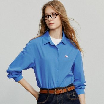 Cotton Puppy Embroidered Polo-Neck Shirt for Women