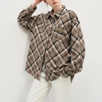 Winter Plaid Shirt for Women – Retro Button Lapel Casual Top
