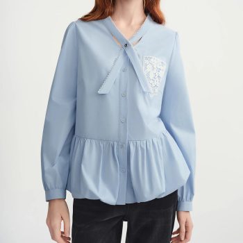 Plus-Size Women’s Relaxed Lace Collar French-Style Shirt