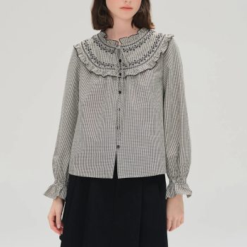 Ruffled Plaid Shirt for Women – Casual Sweet French Style Top