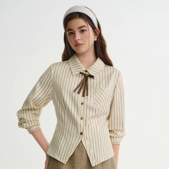 Plus Size Women’s Caramel Striped Shirt – College Style Winter Top