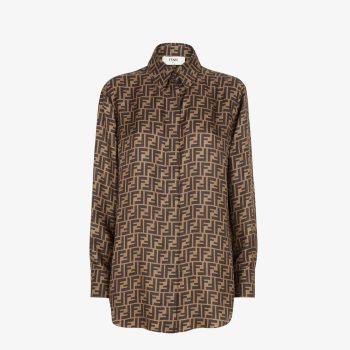 Fendi Brown FF Silk Oversized Shirt with Jacquard Motif