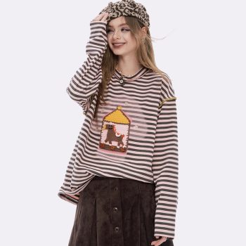 Y2K Casual Loose Preppy Graphic Round Neck T-Shirt for Women