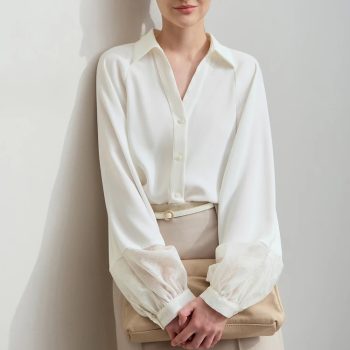 Minimalist Women’s Loose Chiffon Blouse with Turn-Down Collar