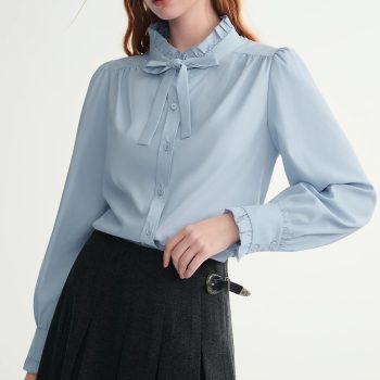 Ruffled Puff Sleeve Tie-Front Blouse for Women – Casual Office Top