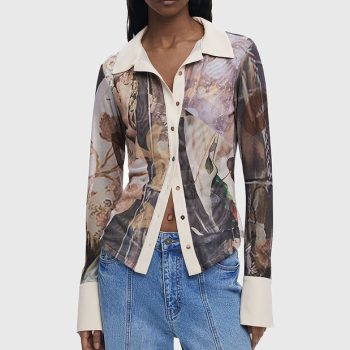 Desigual Beige Floral Long Sleeve Women’s Shirt