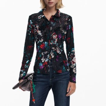 Desigual Women’s Black Floral Button-Up Shirt – Long Sleeve