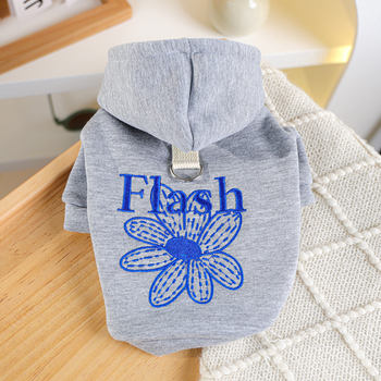 Cozy Pet Hoodie Sweater – Gray Pullover with Blue Daisy Embroidery