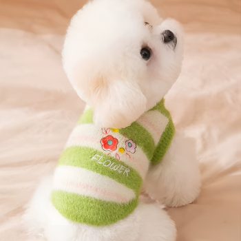 Striped Flower Knit Pet Sweater for Small Dogs & Cats – Autumn/Winter