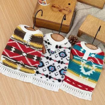 Cozy Winter Dog Vest Plush Hoodie with Tassel for Small Dogs & Cats