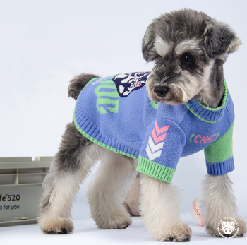 Cozy Knit Pet Sweater Dress with Checkered Skirt for Autumn & Winter
