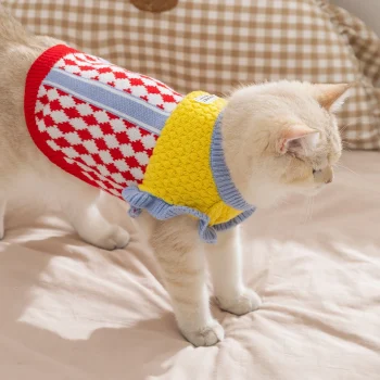 Winter Lace Checkered Pet Sweater for Small Dogs & Cats