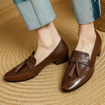 Elegant Leather Round Toe Slip-On Pumps for Women – 6cm Mid Heel