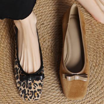 Women’s Leopard Suede Leather Flats with Bowtie – Elegant Slip-On Shoes