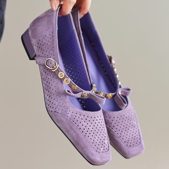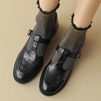 Plus Size Suede Leather Mary Jane Flats with Buckle – Elegant Dress Shoes