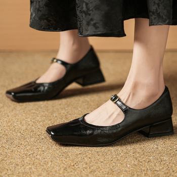 Elegant Women’s Leather Square Toe Slip-On Flats