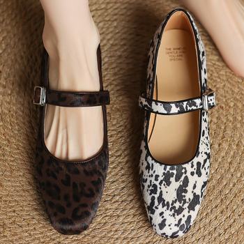 Leopard Horsehair Mary Jane Flats with Metal Buckle – Women’s Round Toe Shoes