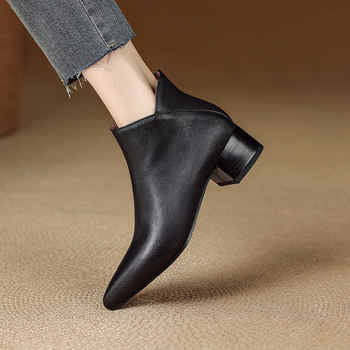 Genuine Leather Retro Ankle Boots with Zipper & Lace