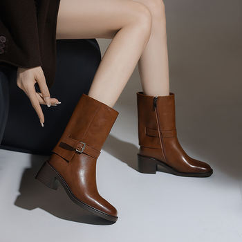 Elegant Mid-Calf Genuine Leather Boots for Women
