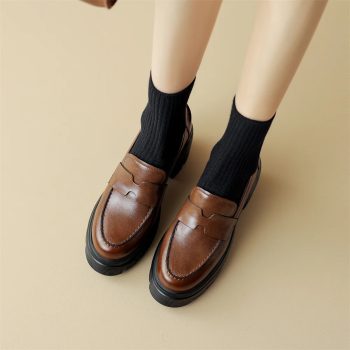 Women’s Genuine Leather Chunky Heel Platform Loafers