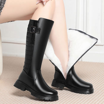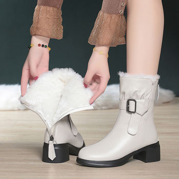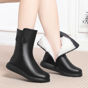 Women’s Genuine Leather Wool-Lined Winter Snow Boots with Zipper