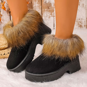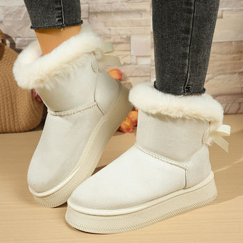Women’s Cozy Faux Fur Platform Snow Ankle Boots with Bow Detail