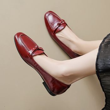 Women’s Genuine Leather Square Toe Low Heel Pumps