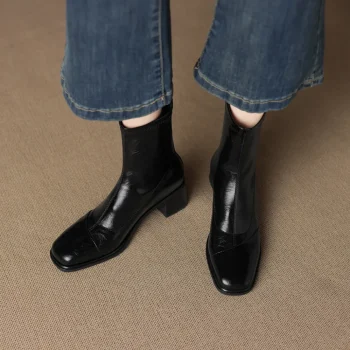 Square Toe Women’s Ankle Boots with Thick Heels and Zipper Closure