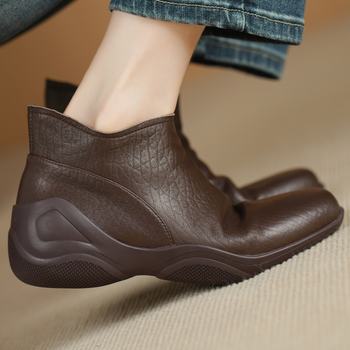 Women’s Sheepskin Leather Patchwork Ankle Boots – 5cm Heel, Back Zip