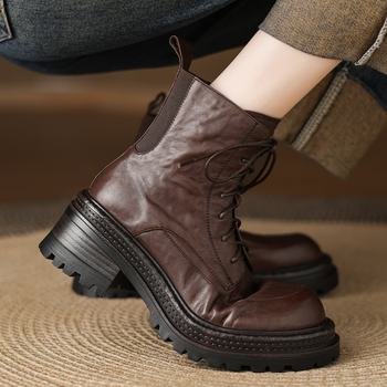 Women’s Sheepskin Lace-Up Punk Ankle Boots with Side Zip & Platform Heel