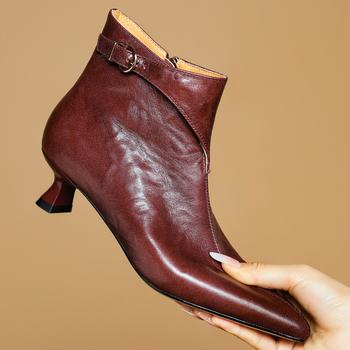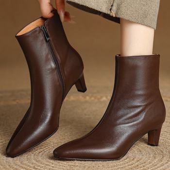 Women’s Genuine Leather Pointed Toe Side Zip High Heel Ankle Boots