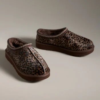 UGG Women’s Brown Leopard Suede Slippers – Cozy Fall/Winter Style