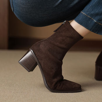Women’s Square Toe Stretch Sock Boots with Block Heel – Modern Short Boots