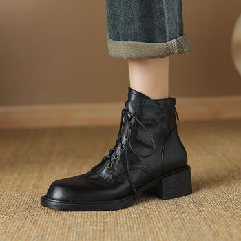 Women’s Genuine Leather Knee High Boots – Thick Heel Motorcycle Style