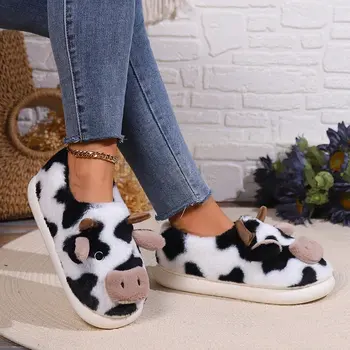 Women’s Plush Cow Slippers Open Toe Indoor House Shoes
