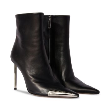 Off-White Black Leather Ankle Boots with Vintage Effect and Side Logo