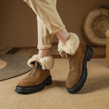 Women’s Wool-Lined Ankle Snow Boots with Zipper and Mid Heel