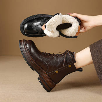 Retro Wool-Lined Leather Snow Boots for Women
